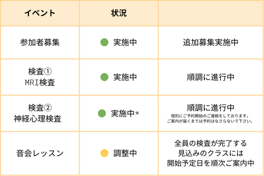*心理検査・MRI検査の両方を完了し、音会レッスンに参加を開始された方を対象
