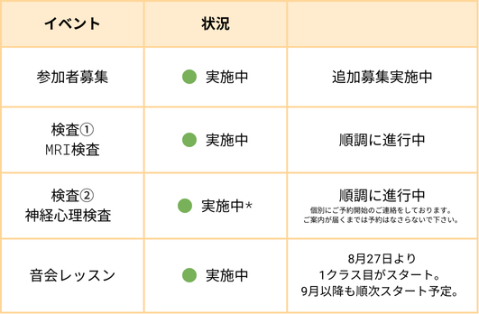 *心理検査・MRI検査の両方を完了し、音会レッスンに参加を開始された方を対象