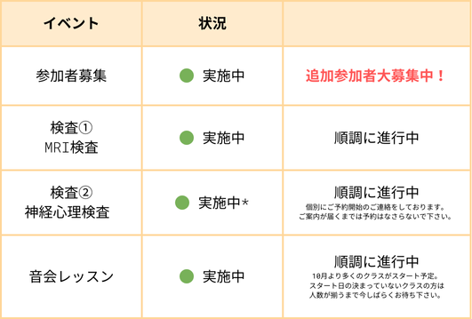 *心理検査・MRI検査の両方を完了し、音会レッスンに参加を開始された方を対象