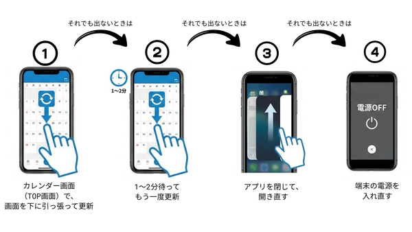 画面を下に引っぱって更新する(画像①)