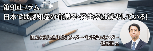 第 2 回の同コラムで紹介した、我が国が世界に誇る疫学研究「久山町研究」で、37年間に及ぶ認知症の有病率・罹患率の変化が報告された (Ohara T, Alzheimer’s Research & Therapy, 2025)。久山町の 65歳以上の住民を対象に1985年、1992年、1998年、2005年、2012年、2017年、2022年の7回、認知症横断調査を実施した。さらに、1988年(n=803)、2002年(n=1,231)、2012年(n=1,519)の時点で認知症のない65歳以上の住民を、それぞれ10年間追跡調査した。その結果、認知症の粗有病率は1985年から2012年にかけて有意に増加したが(1985年6.7%、1992年5.7%、1998年7.1%、2005年12.5%、2012年17.9%)、2012年から2022年にかけては有意に減少した(2017年15.8%、2022年12.1%)。さらに、認知症発生率は1988年群から2002年群では有意に増加したが、2002年群から2012年群にかけては有意に減少した。このように、久山町において2012年以降、認知症の有病率および発生率の減少傾向が認められた。発生率の低下は、高血圧や糖尿病などの生活習慣病の予防・管理の改善、ならびに有酸素運動の推奨など健康的な生活習慣への意識の向上によると考えられた。
